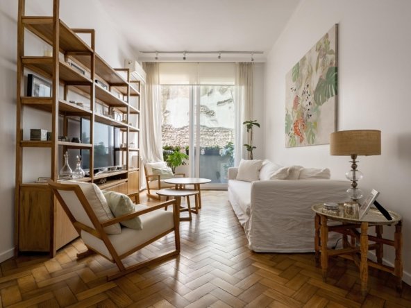 Hall de entrada amplio. Living comedor en L, Dormitorio principal en suite. Segundo dormitorio incorporado al living (con puerta corrediza). Baño completo. Suelos de parquet. Aire acondicionado.